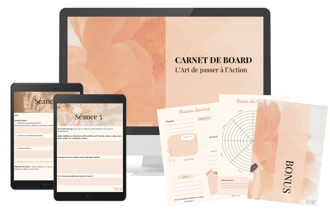 Ce livret digital de 53 pages t’accompagnera avant, pendant et après chaque séance, en créant un véritable fil conducteur dans ton parcours. Il t’aidera à clarifier tes intentions, à exprimer tes ressentis et à définir des actions concrètes. Conçu comme un espace d’ancrage, il te permettra d’intégrer tes prises de conscience dans ton quotidien et tout au long des séances.